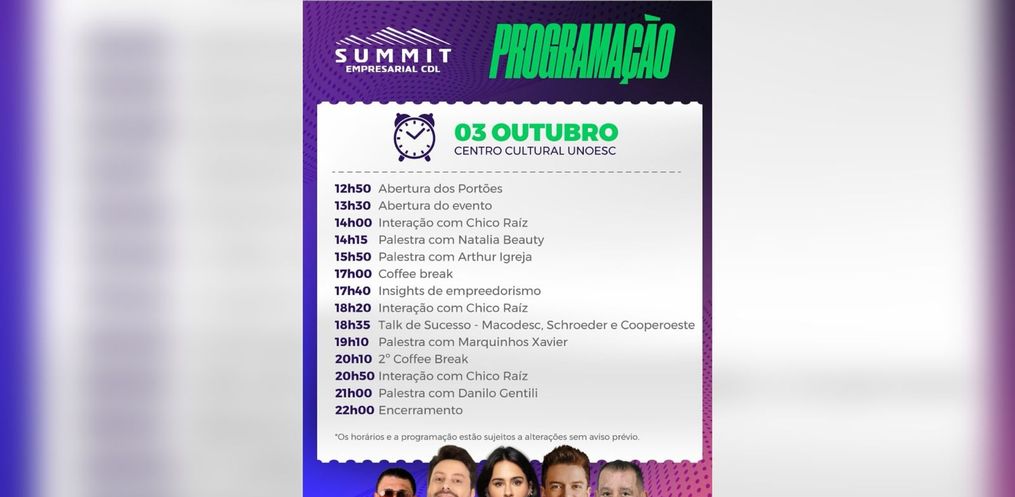 O tão aguardado Summit Empresarial 2025 será realizado nesta sexta-feira, 3, no Centro Cultural da Unoesc, em São Miguel do Oeste. Com todos os ingressos já vendidos, o evento deve reunir centenas de empreendedores e profissionais da região para um dia inteiro de aprendizado, trocas e experiências marcantes.