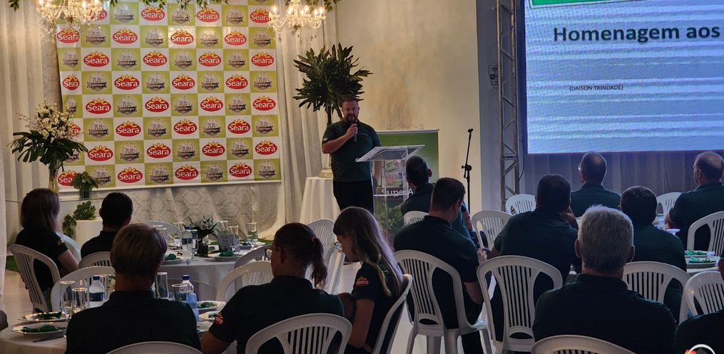 Premiação foi realizada na noite desta quinta-feira, 24, no Solar Eventos, em Laranjeira, interior de Itapiranga. O programa da Seara Alimentos, desenvolvido pela JBS, visa valorizar os produtores integrados e reforçar a confiança entre a empresa e a produção. O Gerente da Unidade de Itapiranga, Renato Zandonai, destaca que a integração é muito importante. Neste ano, vários produtores foram premiados pela primeira vez.