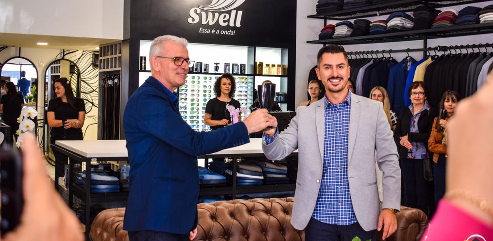 - Sobre a Swell Moda Masculina, o empresário relatou que sempre foi cliente da agora antiga Fávero Modas e quem diria, segundo ele, que teria a oportunidade de dar continuidade a esta história de 52 anos da empresa e da família Favero na cidade.