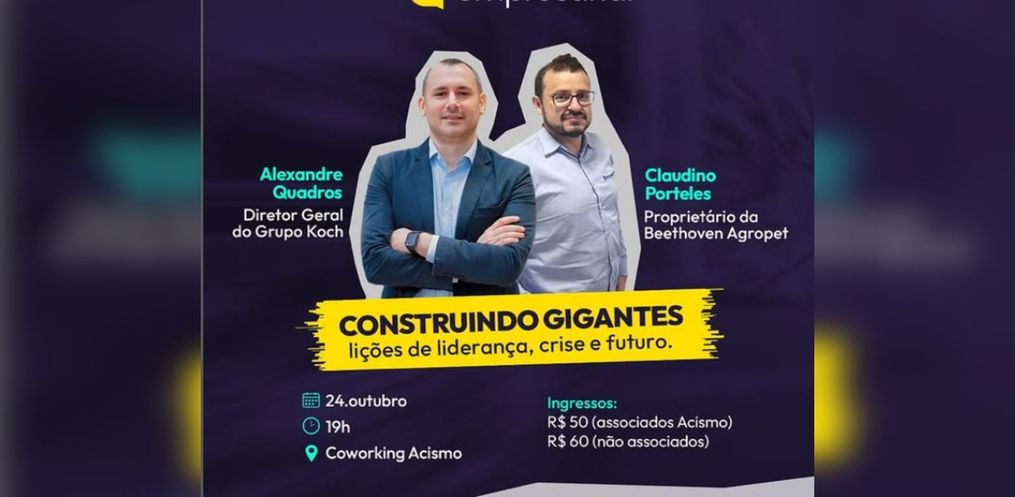 Os ingressos custam R$ 50 para associados e R$ 60 para não associados, e podem ser adquiridos diretamente na sede da Acismo ou pelo link disponível no Instagram do Núcleo Empresarial da entidade.