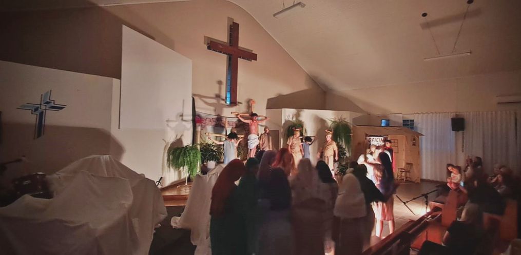 Nessa sexta-feira, 18, a Igreja Evangélica Luterana do Brasil (IELB), Congregação Paz, emocionou fiéis e visitantes com a encenação da peça Oficina do Emanuel, em São Miguel do Oeste. O teatro foi conduzido pelo grupo de teatro Paz, que buscou representar a morte e ressurreição de Jesus Cristo.