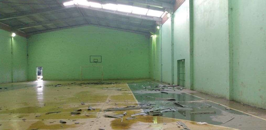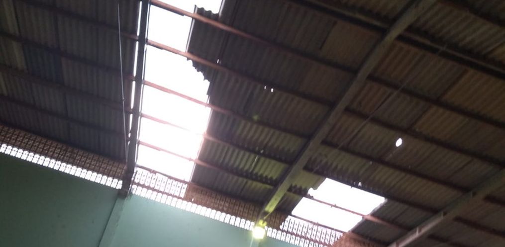 Um vento forte acompanhado pela chuva por volta das 17 horas desta segunda-feira, 24, destelhou parte do ginásio da comunidade de Linha Aparecida, interior de Itapiranga.