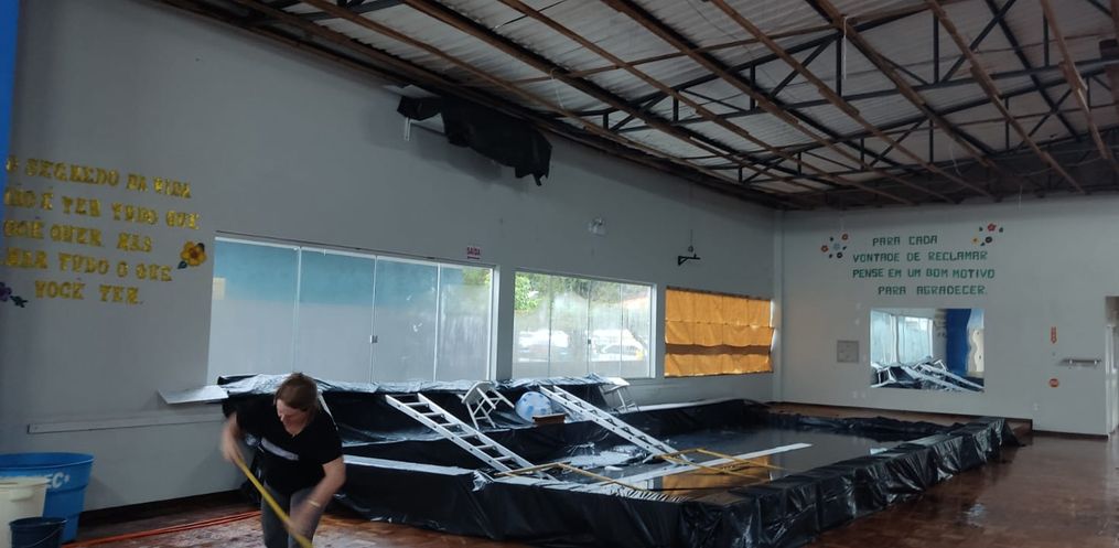 A informação é do Coordenador dos Idosos Anor Malvessi. A manutenção do telhado do centro de idosos foi iniciada nas últimas semanas, onde a colocação de manta asfáltica resolveu o problema de goteiras e infiltrações existentes. Porém, ao subirem no telhado da parte central da edificação, pôde ser percebido que a estrutura do telhado estava comprometida. Informa que devido a esse comprometimento da estrutura estava sendo analisada, e qual seria o melhor plano de ação a ser feito para reestruturar o telhado, mas infelizmente o telhado acabou cedendo por conta das fortes chuvas ocorridas nesta semana.