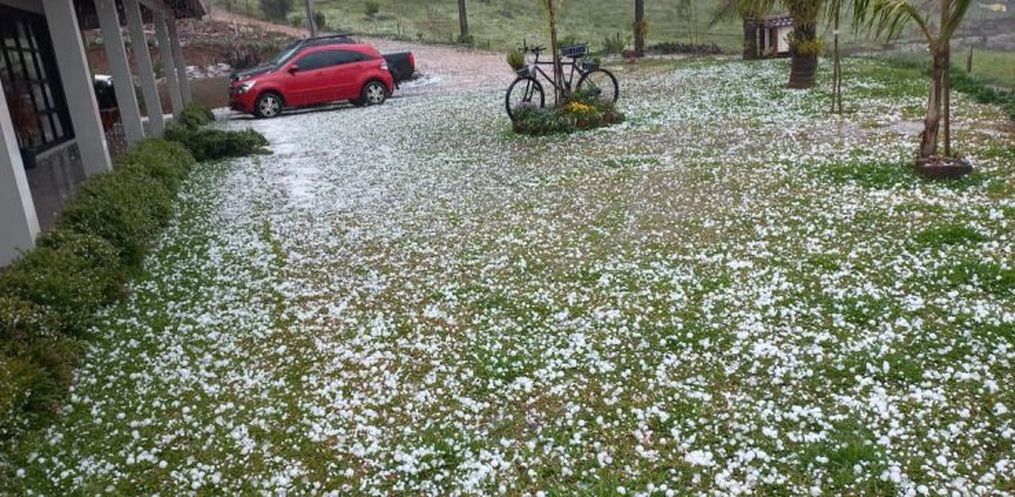 O primeiro registro ocorreu em Abelardo Luz, por volta das 12h, com granizo fino em grande quantidade. As pedras, que caíram com chuva, deixaram a paisagem branca. As casas atingidas pelas pedras já receberam lonas.
