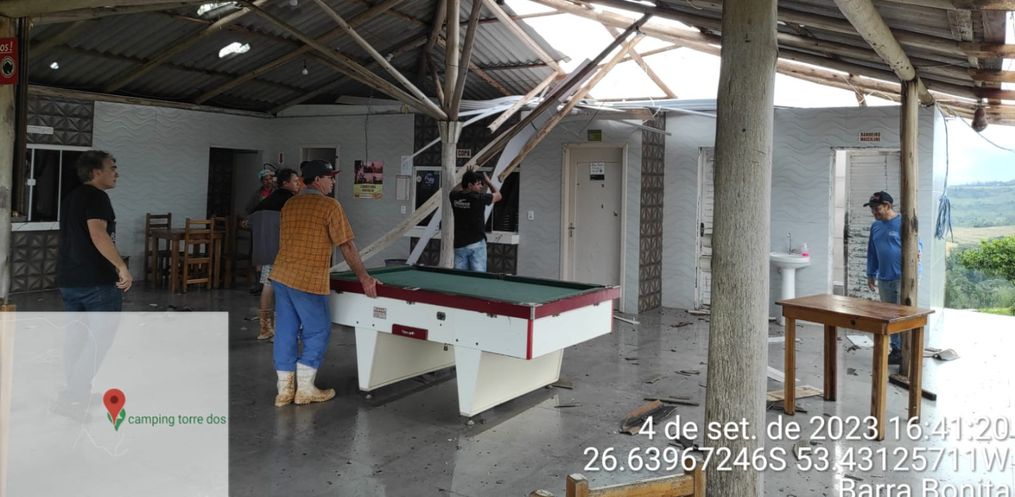 Um forte temporal atingiu o município de Barra Bonita na tarde de segunda-feira, dia 4 de setembro, causando danos em diversas propriedades do município. Os ventos fortes afetaram cerca de 15 propriedades, deixando um rastro de destruição em algumas delas. Os principais danos causados pelo temporal incluíram destelhamentos em residências, quedas de postes de energia elétrica, derrubada de árvores e o destelhamento parcial da escola na Linha Águas do Araçá.