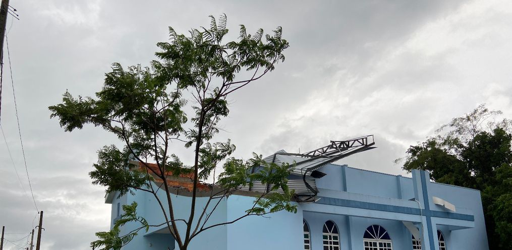 Um temporal com fortes ventos e chuva atingiu a cidade de Descanso, nesta quinta-feira, 24, por volta das 13h45. O Bairro Vila Real foi um dos mais afetados, com casas e uma igreja destelhada. Além disso, a queda de árvores provocou bloqueios em várias vias da cidade.