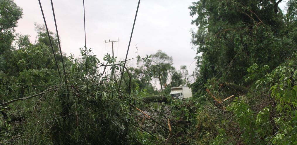 Uma árvore caiu sobre a rede de alta tensão na comunidade, interrompendo o trânsito por aproximadamente três horas.