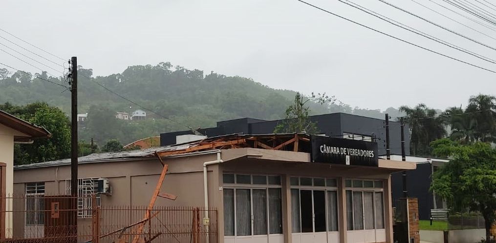 Na cidade de Mondaí, a sede da Câmara Municipal de Vereadores foi atingida pelo temporal e teve parte do telhado arrancado pelo vento. Os Bombeiros realizaram a entrega de lona para a cobertura do local. Em nota, a assessoria de imprensa informou que não haverá atendimento ao público na Câmara de Mondaí nos próximos dias, até que sejam feitos os devidos reparos no telhado.