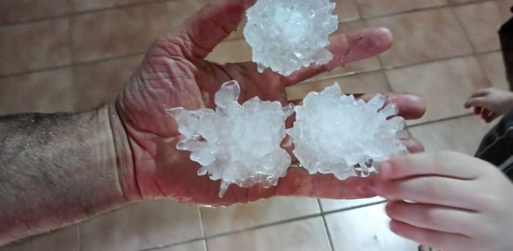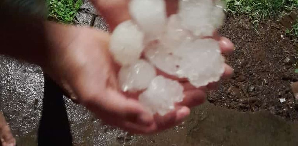 Um temporal com chuva de granizo na noite desta quinta-feira, 16, causou estragos em comunidades no interior de Mondaí. Moradores das Linhas Catres e Ervas registraram o tamanho das pedras de gelo que caíram.
