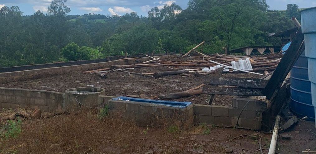 Além da casa, a propriedade da família também foi atingida. O galpão e o Compost Barn onde é realizada a ordenha foram totalmente destruídos.