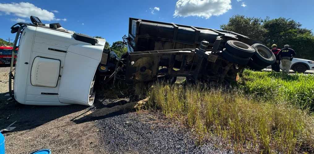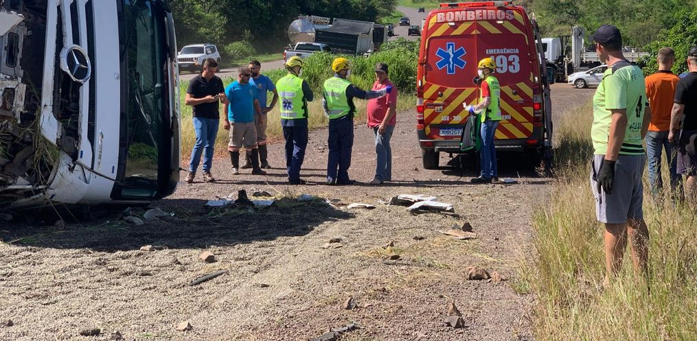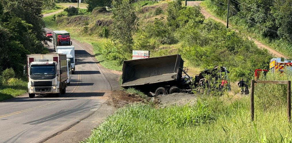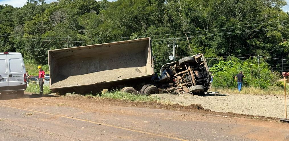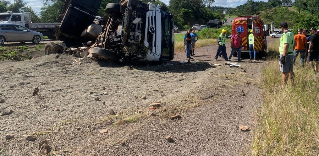 Uma pessoa sofreu ferimentos em um acidente na tarde desta quinta-feira, 25, na BR 163. A colisão aconteceu por volta das 15h30 nas proximidades do Casep. O motorista de um caminhão caçamba carregado com pedra brita perdeu o controle da direção e tombou. O veículo tem placa de São Miguel do Oeste. De acordo com o Corpo de Bombeiros, um homem sofreu ferimentos generalizados. Ele foi socorrido pelos bombeiros e levado para o Hospital Regional.