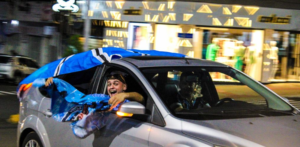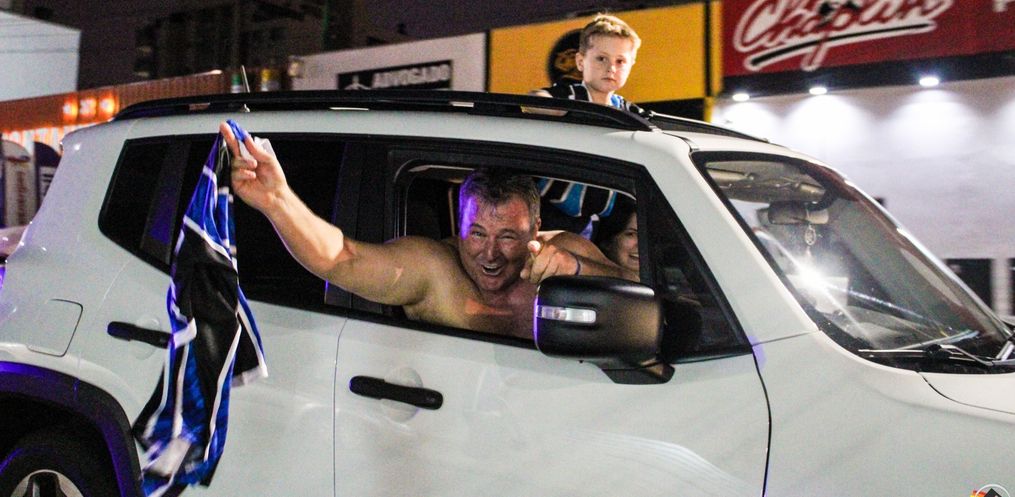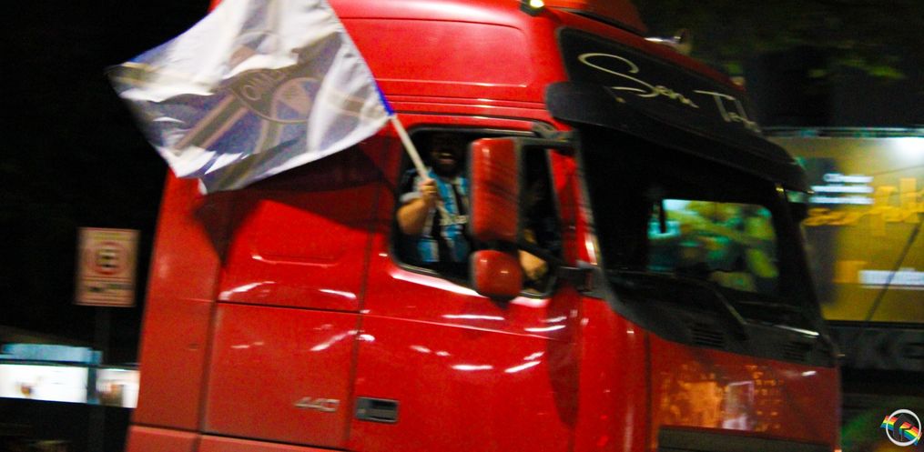 Logo após a vitória os torcedores começaram a comemorar o título, com uma carreata realizada no centro da cidade. Vestindo camisas tricolores e de posse de bandeiras do Grêmio, a rua Almirante Tamandaré recebeu uma boa quantidade de veículos.