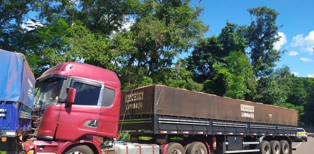 Na manhã desta terça, por volta das 08h15, foi registrado uma colisão traseira entre duas carretas Scania do Paraguai próximo a curva da morte em Romelândia.