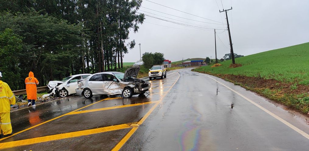 Um dos veículos envolvidos emplacado em Sulina/PR, era conduzido por uma jovem de 22 anos e o outro Corolla emplacado em Pato Branco/PR, tinha como motorista um homem de 58 anos e uma caroneira de 59 anos.