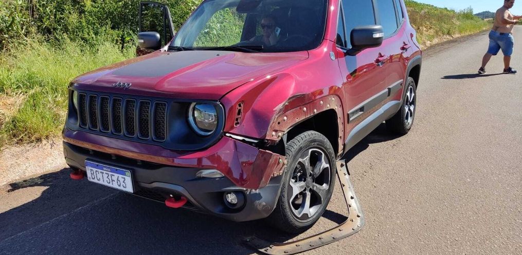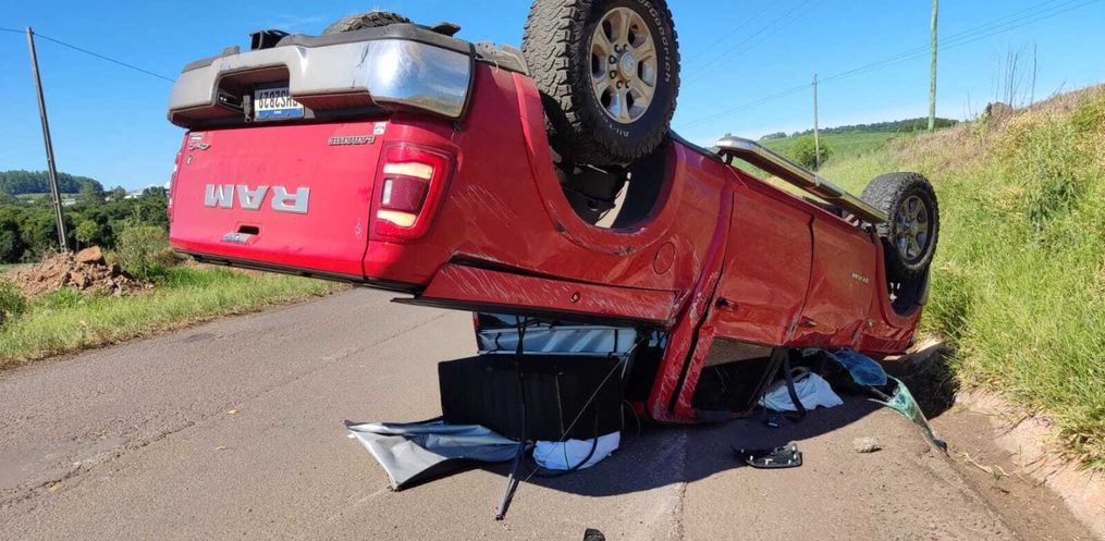 Segundo as informações obtidas no local pela Peperi, na camionete Ram, que seguia sentido Guarujá do Sul a São José do Cedro, acabou capotando após colidir lateralmente contra o Renegade que transitava no sentido contrário.