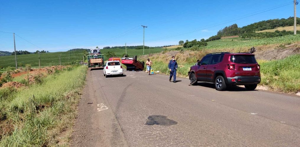 Um acidente de trânsito tipo colisão seguida de capotamento sobre a pista foi registrado na tarde desta segunda-feira, 17, por volta das 15h15, na BR-163, em Guarujá do Sul.