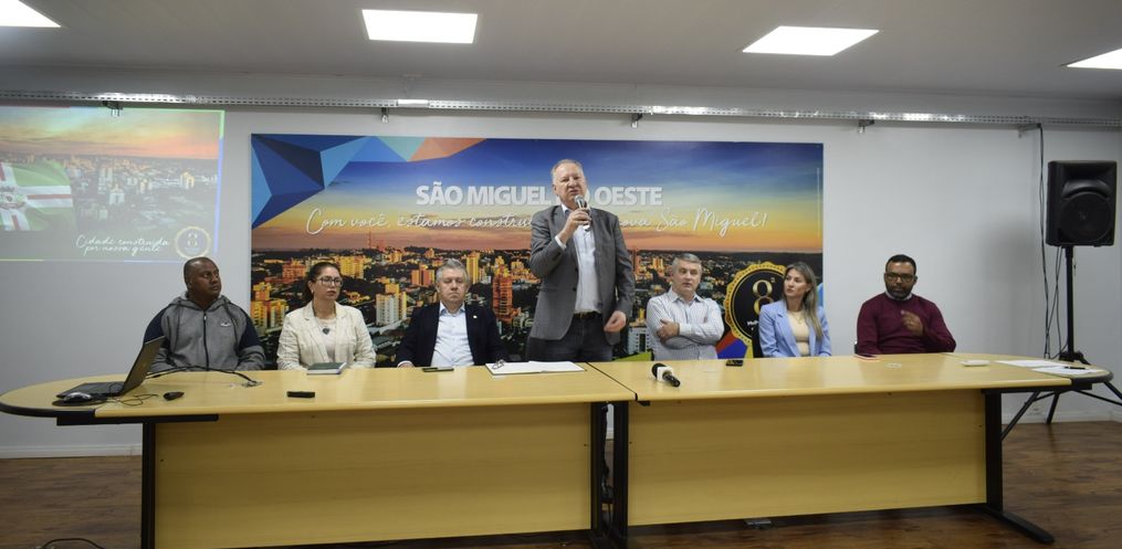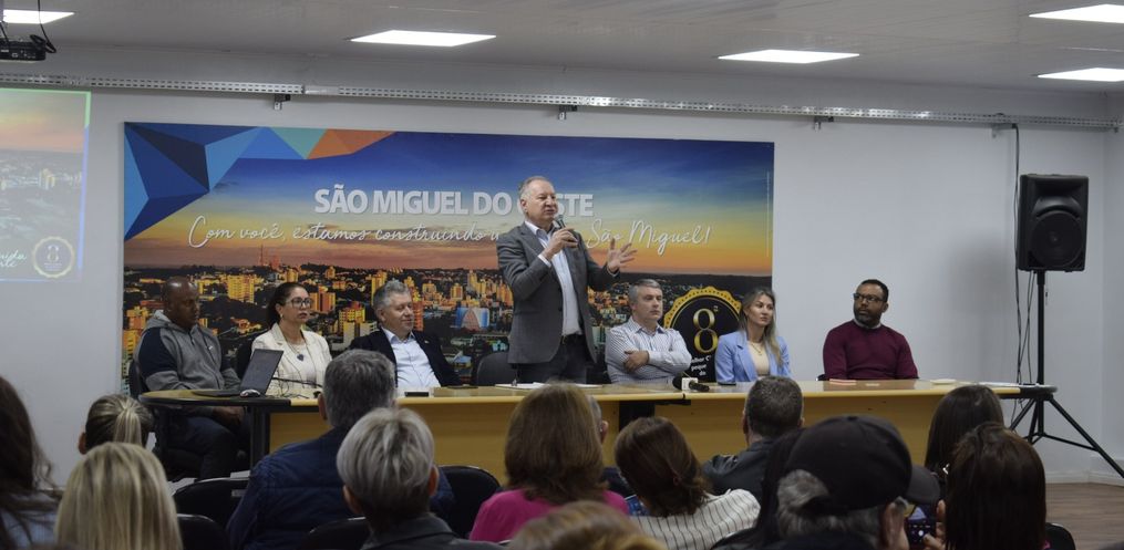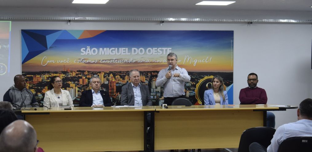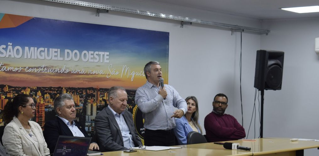 O prefeito Wilson Trevisan reuniu lideranças, autoridades locais e regionais e imprensa, na manhã desta quarta-feira (18), no Salão Nobre da prefeitura, para anunciar o maior pacote de obras para a Saúde da história de São Miguel do Oeste.
