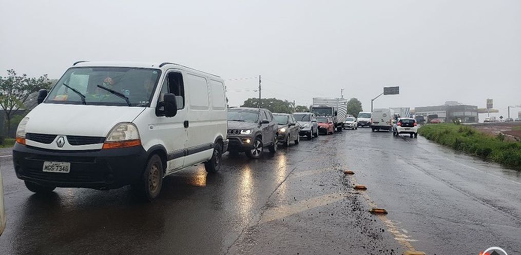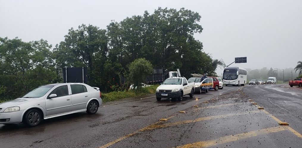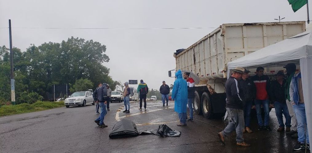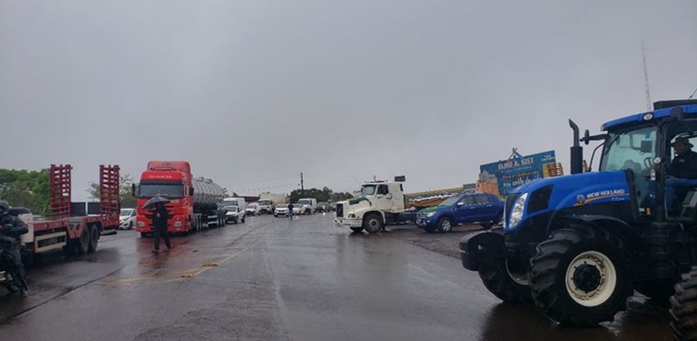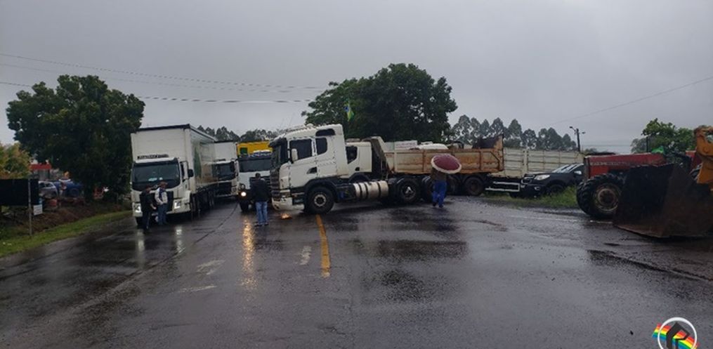Os manifestantes bloquearam a rodovia com caminhões e tratores. Conforme as informações obtidas pela reportagem da Peperi no local, caminhões são impossibilitados de passar, exceto transportadores de ração, leite e cargas vivas. Os carros de passeio são liberados somente a cada 30 minutos.