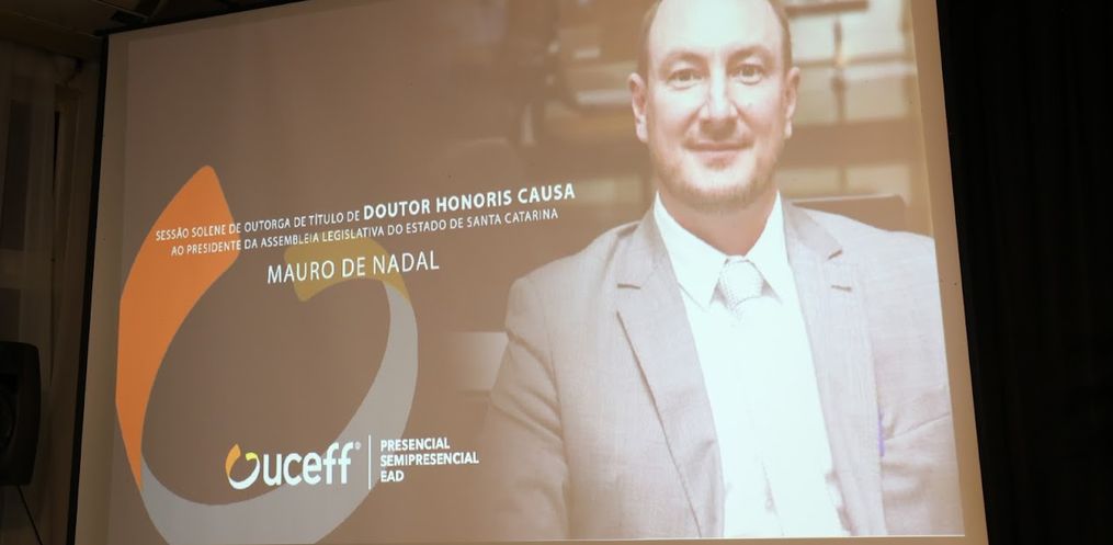 Em evento coordenado pelo Reitor do Centro Universitário FAI Uceff, Leandro Sorgatto, foi concedido ao presidente da Assembleia Legislativa de Santa Catarina, deputado Mauro de Nadal, o Título de Doutor Honoris Causa, uma homenagem proposta pelo Centro Universitário FAI – Uceff pelos relevantes serviços prestados pelo parlamentar. Foi destacada a trajetória esportiva, familiar, profissional e política de De Nadal, duas vezes prefeito de Cunha Porã, exercendo o quarto mandato de deputado estadual e pela segunda vez presidente da Alesc.
