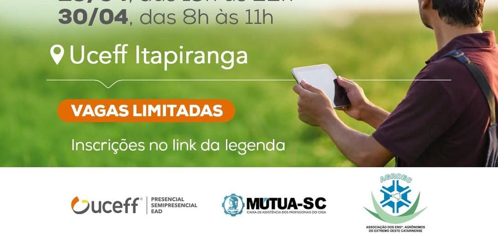 A Uceff de Itapiranga realiza nesta sexta-feira, 29, e no sábado, 30, um minicurso de Pulverização com Drone. A capacitação tem participação da AGROEC - Associação dos Engenheiros Agrônomos do Extremo Oeste Catarinense.