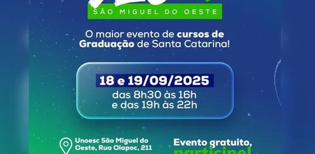 O evento apresenta os mais de 20 cursos de graduação disponíveis nos campi de São Miguel do Oeste, Maravilha, Pinhalzinho e São José do Cedro. Entre as novidades do Seletivo 2026, estão os cursos de Terapia Ocupacional, Ciência da Computação e Pedagogia.