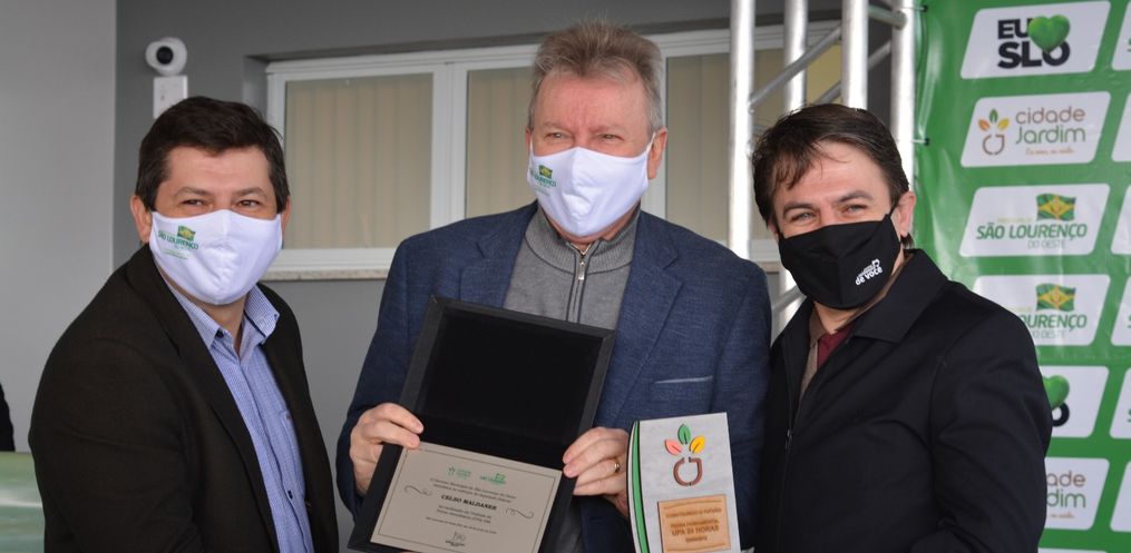 O deputado Celso Maldaner recebeu da administração municipal de São Lourenço do Oeste uma homenagem como forma de reconhecimento por todo o esforço e trabalho em prol do município e, principalmente, por fazer a UPA 24 horas se tornar realidade. Ele recebeu uma placa e uma réplica da pedra fundamental da UPA 24 horas das mãos do prefeito Caleffi o vice-prefeito Daniel Hippler. Na oportunidade, reiterou seu compromisso com o município garantindo recursos para a compra de uma UTI móvel.