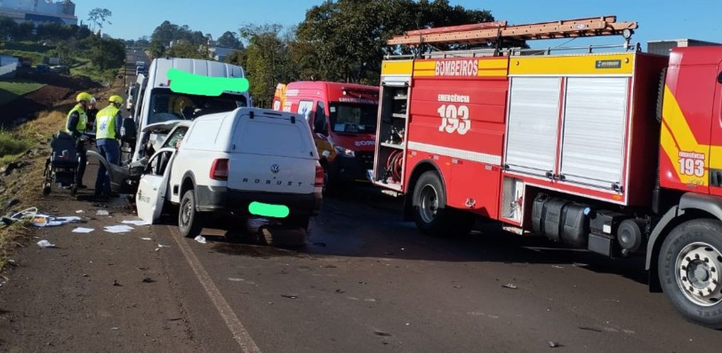 Um grave acidente foi registrado na manhã desta terça-feira, 29, por volta das 8h10, na BR-282, em Pinhalzinho, nas proximidades do Parque do Itaipu Rural Show.