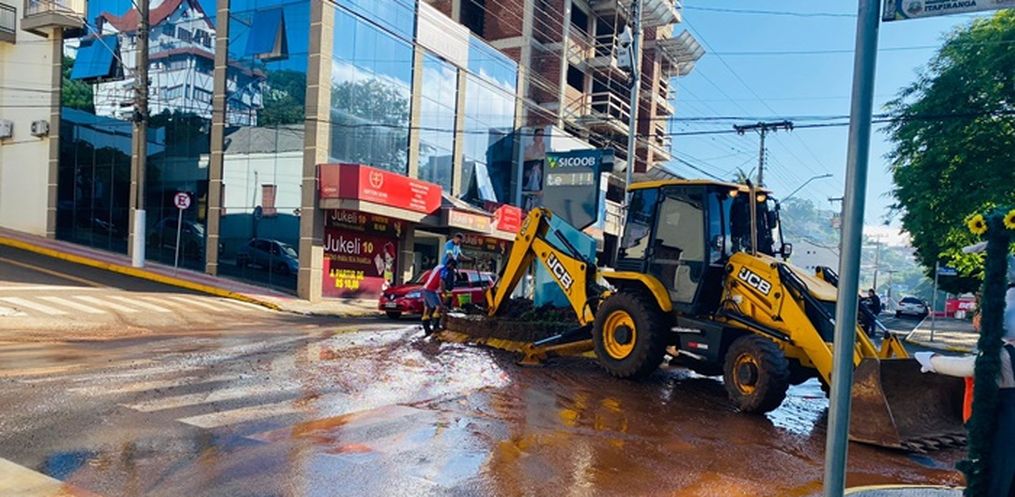 O vazamento iniciou ainda durante a madrugada e alagou a rua que precisou ser interditada para os trabalhos. A Polícia Militar também orienta aos motoristas cautela ao trafegar pelo centro e para optar ruas alternativas.