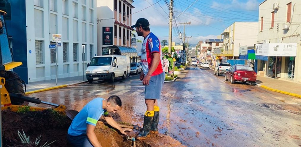 A reportagem da Peperi verificou no local que o plantão do setor de água da prefeitura realiza os reparos, que devem se estender durante toda manhã.