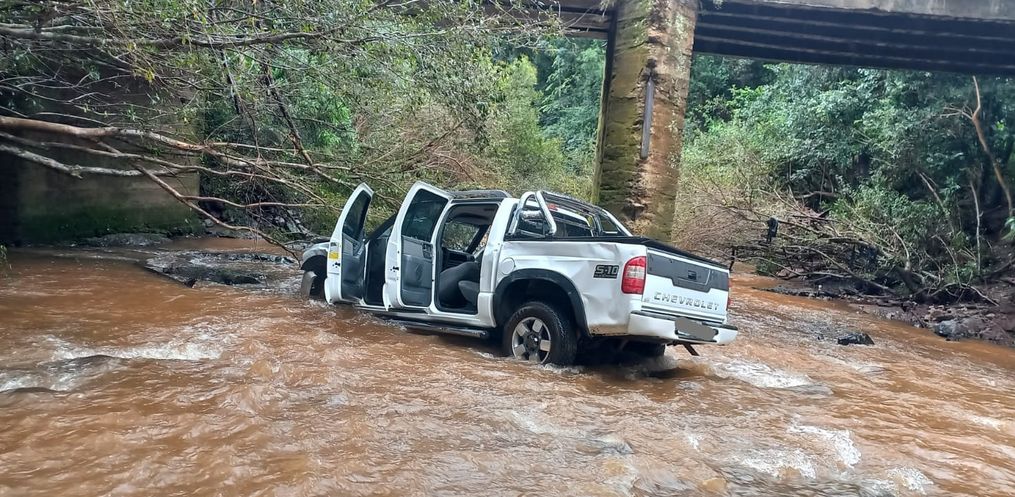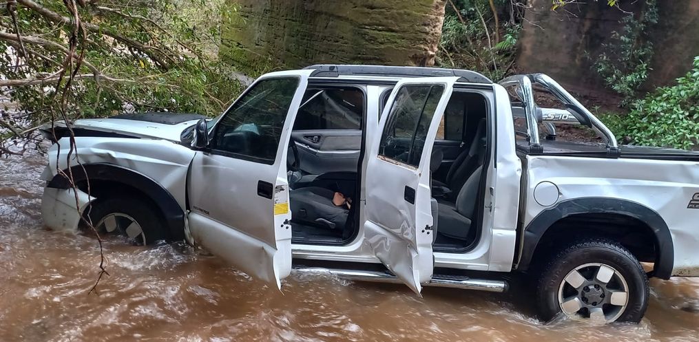 Um acidente envolvendo uma caminhonete S 10 deixou duas pessoas na manhã deste domingo no interior de Dionísio Cerqueira. A condutora do veículo perdeu o controle da direção, saiu da pista e caiu de uma ponte na Linha União. O acidente aconteceu por volta das 10h. As duas ocupantes do veículo, mãe e filha, tiveram ferimentos e foram levadas para hospitais da região.