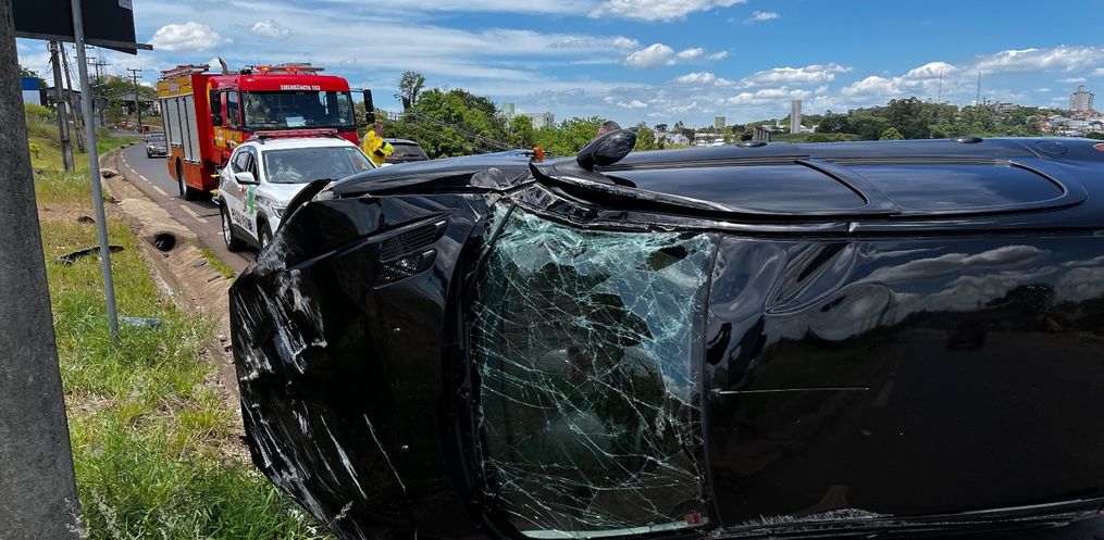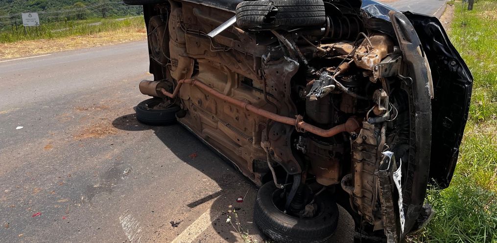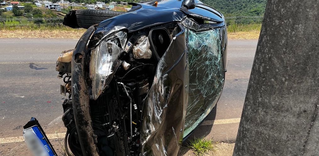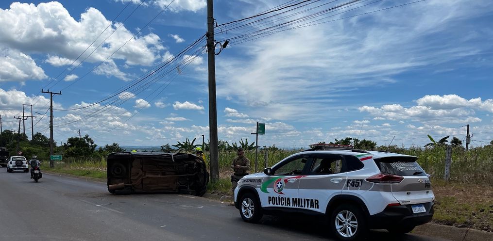 Um carro capotou na estrada de acesso à Linha Nereu Ramos por volta das 11h50 desta sexta-feira, 5, em São Miguel do Oeste.