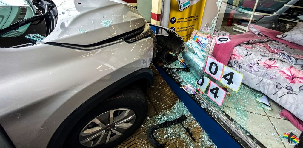 Com o impacto a vidraça do local quebrou, alguns produtos foram atingidos e o carro teve danos de média monta. A mulher ficou em estado de choque e precisou de atendimento do Corpo de Bombeiros, que foi até o local e conduziu ela ao Hospital Regional.