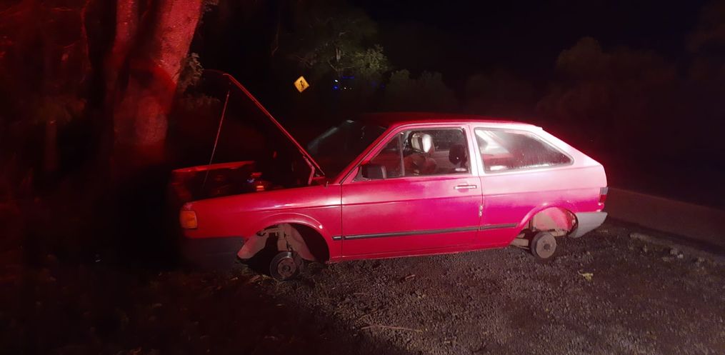 O Gol também foi encontrado sem as quatro rodas e diante dos fatos, um Boletim de Ocorrência foi confeccionado e o automóvel removido ao pátio de apreensões conveniado.