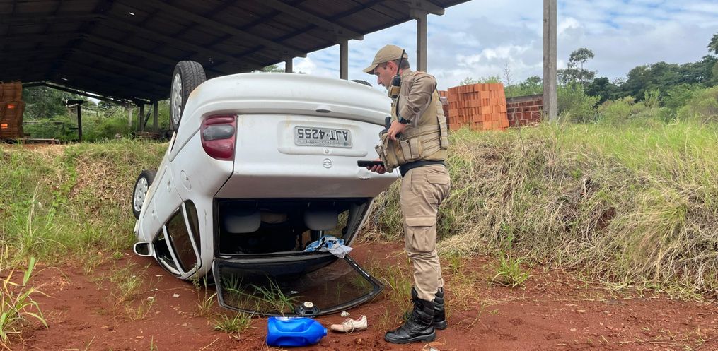 Na tarde desta segunda-feira, 08, a guarnição da Polícia Militar foi acionada para atender uma ocorrência de um veículo que estaria capotado em uma cerâmica no bairro Progresso. A PM chegando no local, confirmou que o veículo capotado era o mesmo furtado no dia anterior. Diante dos fatos, a Polícia Militar registrou o boletim de ocorrência e acionou o guincho para remover o veículo do local.