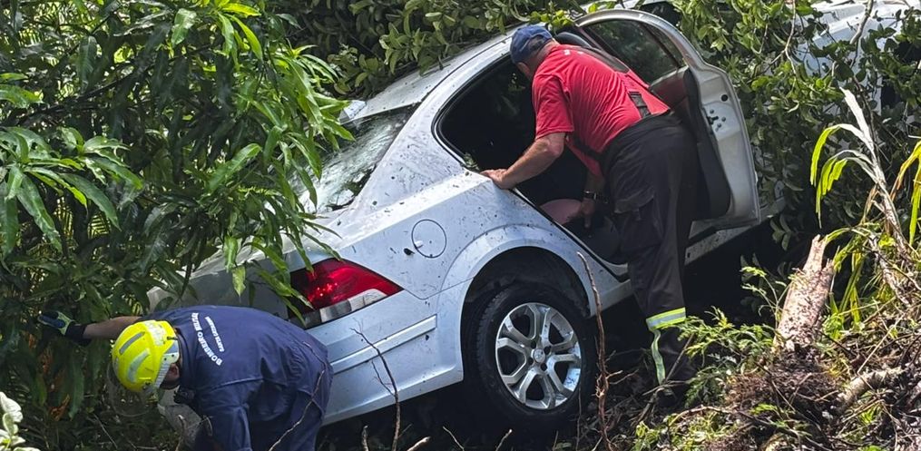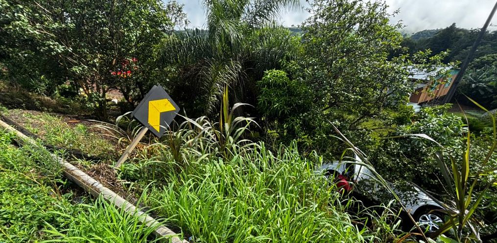Um veículo saiu da pista e caiu em um barranco por volta das 08h45 desta sexta-feira, 2, na BR 282, trecho entre São Miguel do Oeste e Maravilha.