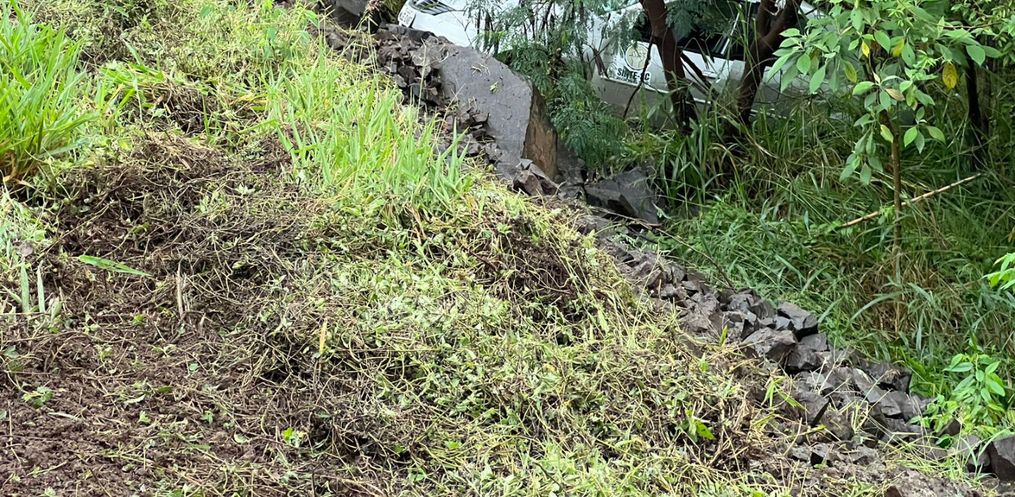 Ela estava em um Logan quando acabou perdendo o controle da direção e caiu em um barranco de aproximadamente três metros.