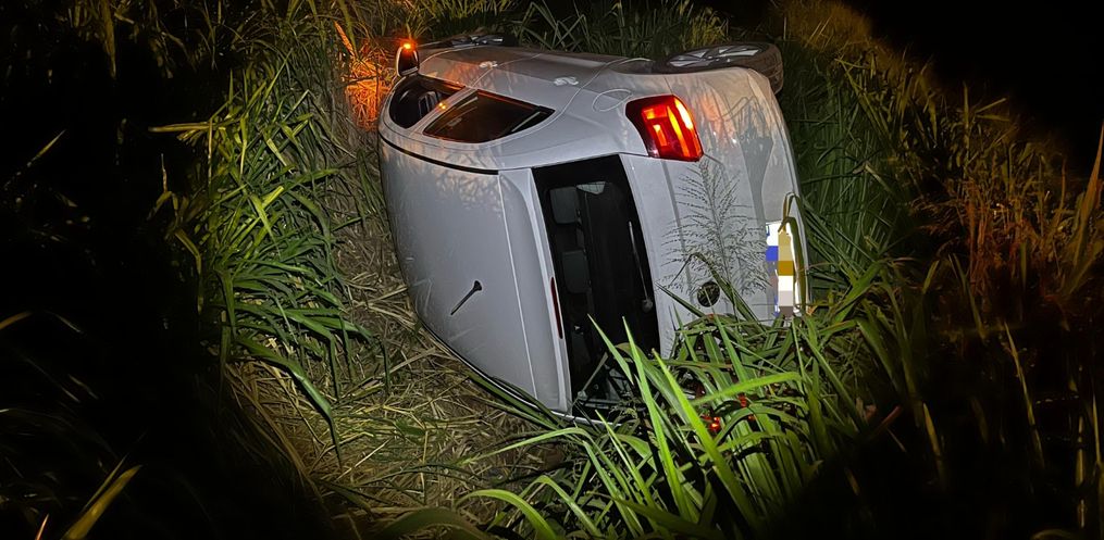 Um VW Gol saiu da pista e capotou por volta das 21h30 desse sábado, 13, às margens da BR 163 na Linha Três Curvas, interior de São Miguel do Oeste.