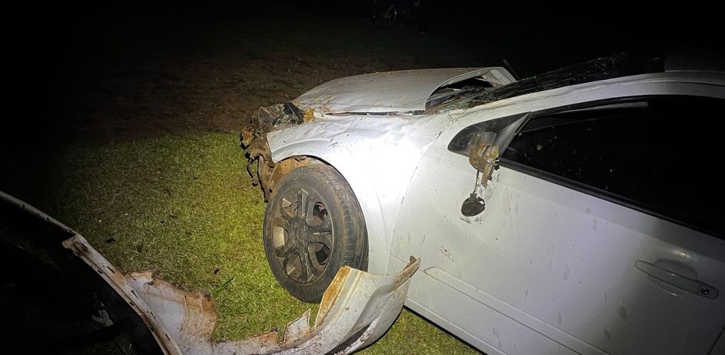 Um GM Vectra saiu da pista e capotou por volta das 19h dessa quarta-feira, 13, na SC 163, na Linha São Valentim, interior de Descanso.