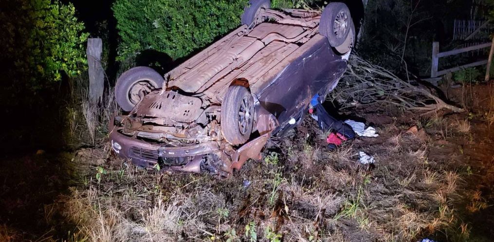 Um veículo de passeio saiu da pista e capotou por volta das 21h45 dessa terça-feira, 29, na Linha Pitangueira, interior do município de Tunápolis.