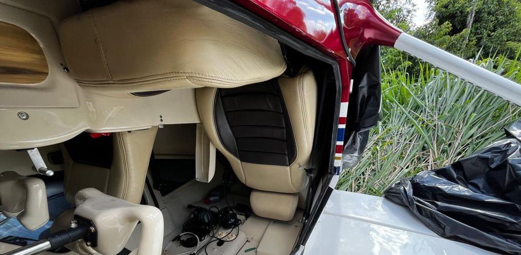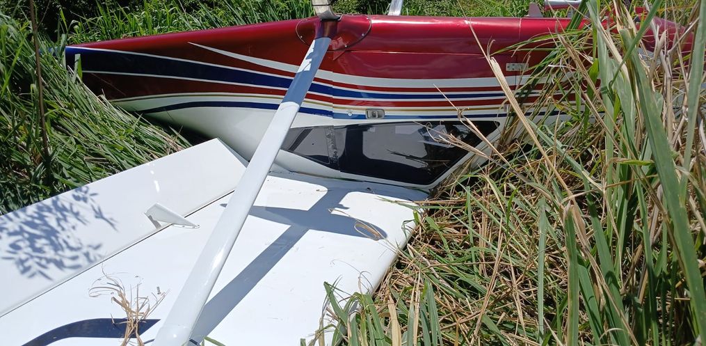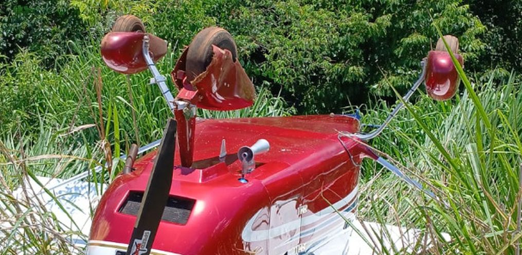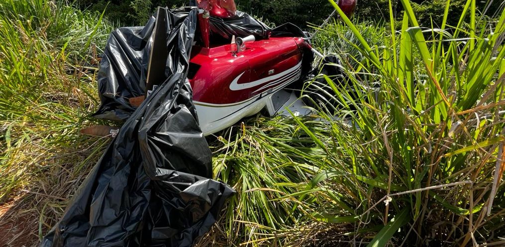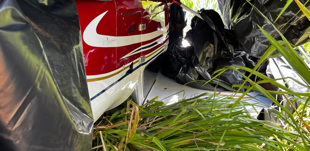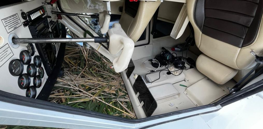 Os policiais encontraram a aeronave, um monomotor, virada de cabeça para baixo em meio à plantação. O piloto, um homem de 35 anos, não ficou ferido. Ele conseguiu sair do avião sozinho, caminhou até uma casa próxima para pedir ajuda e, na sequência, acionou a PM.
