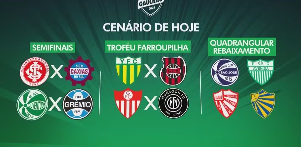 A última rodada do Gauchão ocorre neste sábado, às 16h30, com a disputa quente especialmente na parte inferior da tabela. Quatro clubes tentam fugir do quadrangular do rebaixamento, enquanto Inter, Juventude e Grêmio, representantes da Série A, estão confirmados nas semifinais.