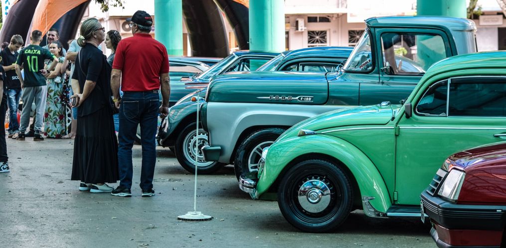 Encontro de carros antigos reúne centenas de veículos na Praça Walnir Bottaro Daniel, em SMO