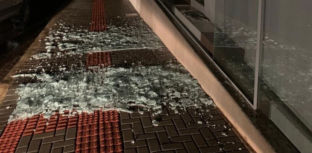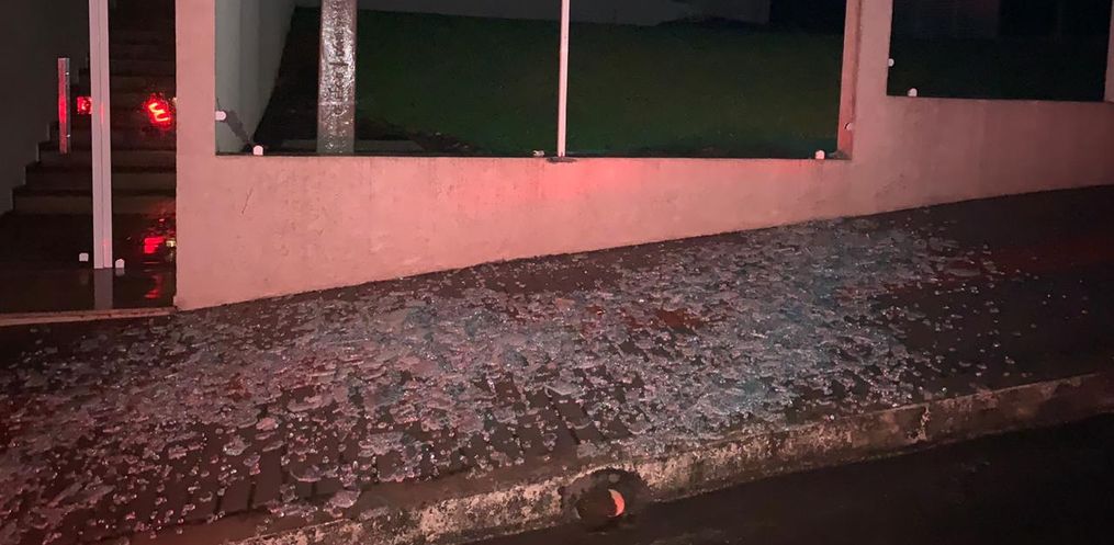 Alguns estabelecimentos comerciais da cidade tiveram as fachadas danificadas devido aos ventos.