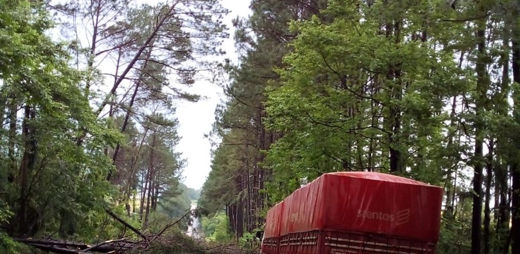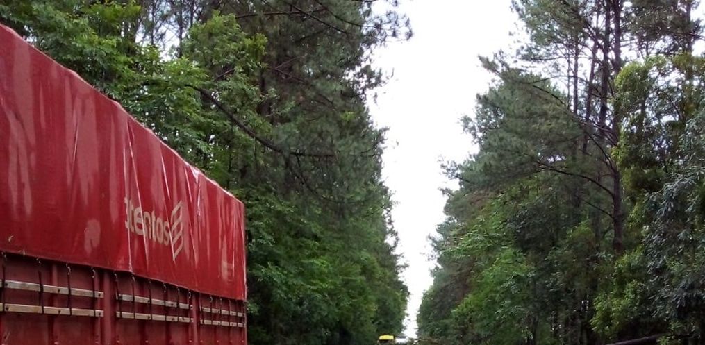 O forte vento derrubou várias árvores na manhã desta segunda-feira, dia 16, na BR 285, trecho entre o trevo de Panambi e o Posto de combustíveis 300.