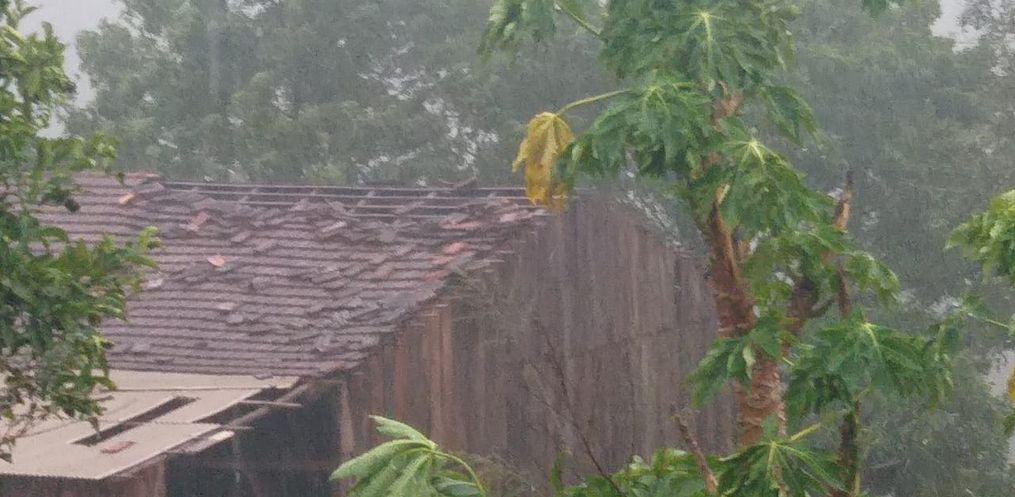 Já na comunidade de Bela União, no interior de Belmonte, grande parte de um galpão ficou destelhado na tarde desta terça.