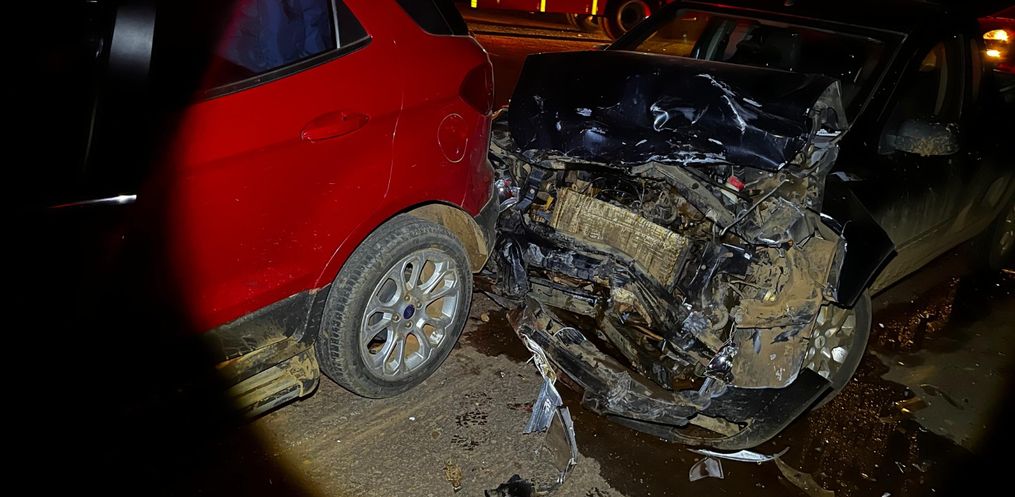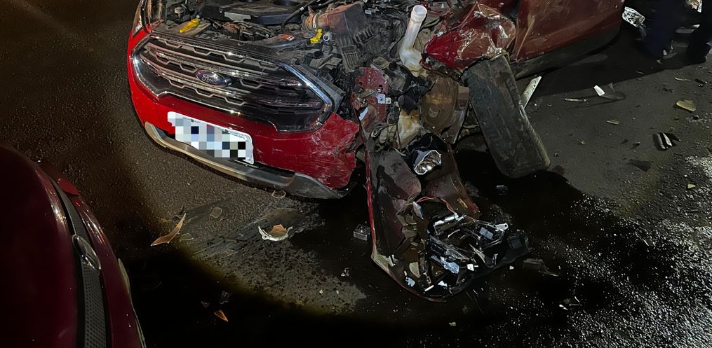A colisão envolveu uma EcoSport, de Santa Helena, uma GM Montana, também de Santa Helena, e um Fiat Palio, de Belmonte.