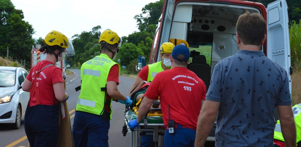 O Corpo de Bombeiros de São Miguel do Oeste e a PMRv atenderam por volta das 14h40 deste domingo, 05, um atropelamento de ciclista na SC-496 nas proximidades do Camping Avante entre Descanso e Belmonte.