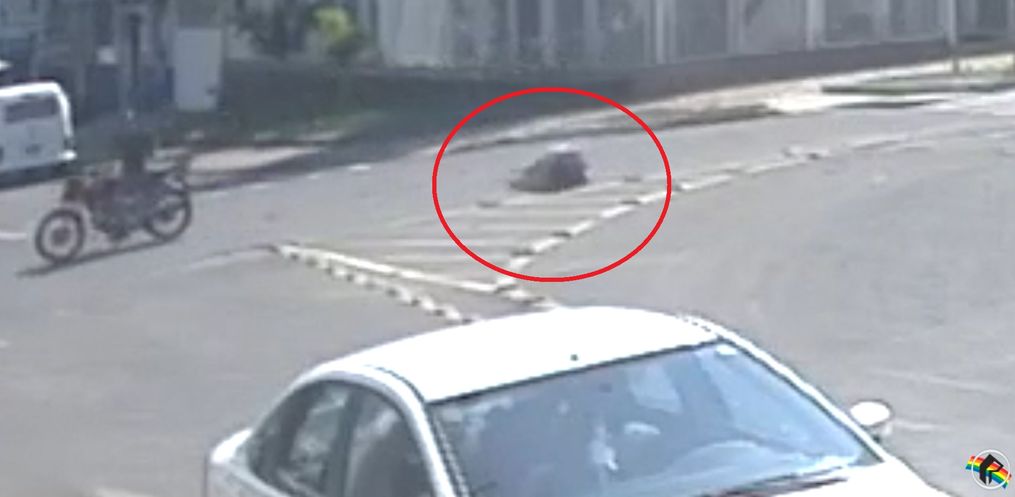 No local, ele falou para a reportagem da Rede Peperi, que um veículo seguia em alta velocidade na sua frente e parou repentinamente, para não colidir na traseira, ele desviou do carro e acabou colhendo a pedestre. Mas a imagens mostram o contrário.