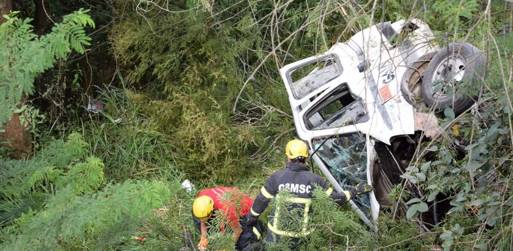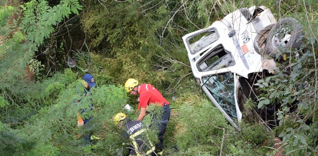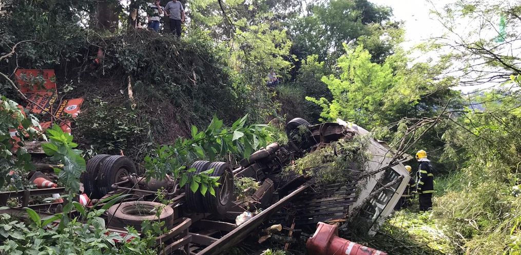 No caminhão estavam três pessoas. De acordo com o Corpo de Bombeiros, todas estão estáveis e sem fraturas.