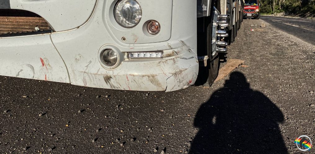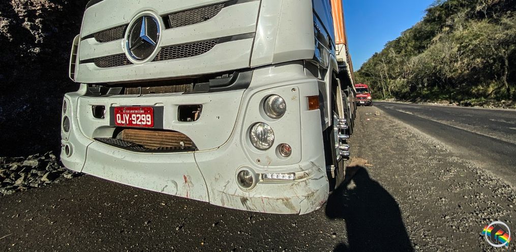 Segundo apurado no local dos fatos, com o homem de 53 anos, que conduzia a Honda/Biz com placa de Maravilha, ele perdeu o controle, caiu na pista e colidiu frontalmente contra um caminhão Mercedes Benz, com placas de São José do Cedro, que seguia sentido SMO.